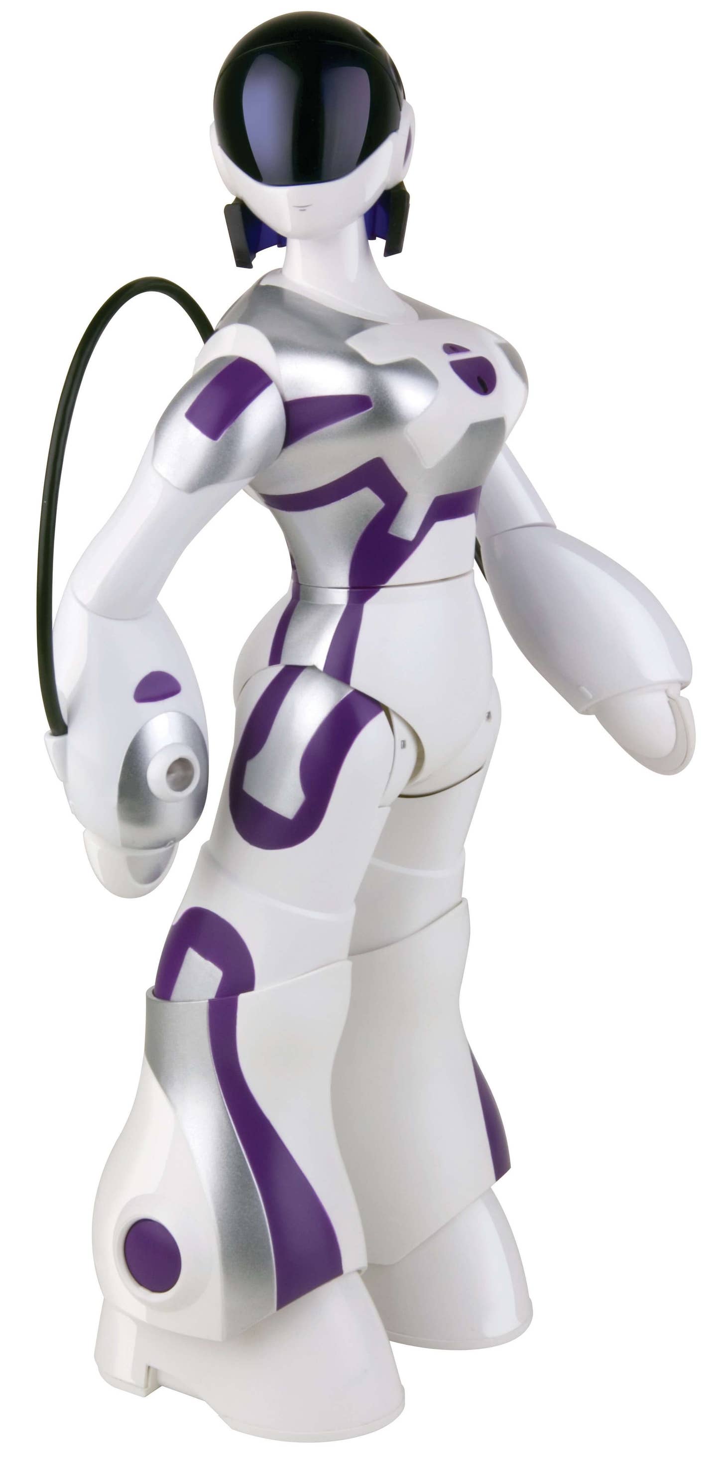 Despite the female frame, Femisapien is all robot on the inside. It comes with three active modes which a user can access by tilting its head. The Responsive mode is the most general, allowing the bot to walk around, perform programmed routines, and avoid obstacles. In Attentive mode, Femisapien will pose for you, sing back up (called the 'shoop feature'), dance, talk, and blow kisses. The Learning mode lets you articulate the bot to record an impressive 80 steps of movement. What can you do with 80 steps? Get two robots to fence, apparently: