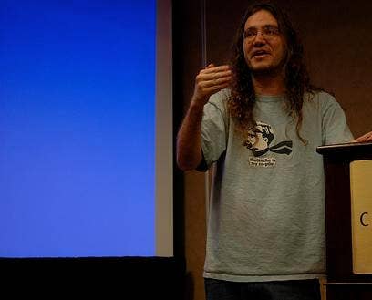 Sure, there are narrow AI programs that can detect credit card fraud, or help a plane land safely, or even translate languages. But where's the computer that thinks it's a person? Where's the human-like artificial intelligence we were promised in movies? Probably in Ben Goertzel's lab. Human-like AI, called artificial general intelligence (AGI), is a passion that Goertzel shares with research and industry leaders around the world. They've started the AGI conference, which had its second annual meeting in March of this year. Videos from that meeting are finally up on Vimeo, and the AGI 09 schedule is here to help you make sense of their order. I encourage you to watch all 36 or so, it's like a free ticket to the conference. You probably don't have the time though, so I included one of my favorites after the break - Robert Swain using many scifi references to explain his attempt at AGI, a program called H.E.L.E.N. K.L.R.
