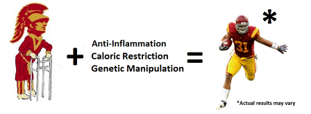 Another faculty member, Dr. Valter Longo, extended the lifespan of yeast 10 times. If there were a yeast category for the Methuselah Foundation’s Mprize (an award given to scientists who significantly increase the lifespan of mice), Dr. Longo would have won handily. In both yeast and mice, a surefire way to enhance longevity is through caloric restriction (CR), which is essentially a state of persistent hunger. On its own, CR can produce a 3-fold and 30-50% lifespan increase in yeast and mice, respectively. Currently, CR has yet to provide any definitive results in primates, but some circles aren’t waiting for the science to unravel and and actively promote the CR diet as a means of human life extension. I know people who have jumped on the bandwagon and willfully sustain mild hunger throughout the day. Perhaps I’m weak-willed, but I could not bear the torment of knowing I could never be fully satiated. Fortunately, Woody Allen’s wisdom provides a rationale for my abstinence from food abstinence: “You can live to be a hundred, if you give up all the things that make you want to live to be a hundred.” Also, there’s evidence CR can lead to a weakened immune system.