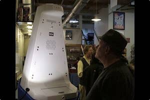 After being given a digital map of their location, Vigilus will patrol autonomously for up to ten hours, the life of its battery. It’s pretty good at getting around, moving easily over the thresholds and carpets commonly found in professional buildings. It responds to both voice and radio commands. Important sites in the area are specified by the client so that, in the case of an incident, the robot understands, “Go to the loading dock.” And as customer needs change often, the Vigilus’ maps can be changed easily and inexpensively. It’s monitored and controlled from a command console. From there, clients can track the robot’s location in real time, enter patrol commands and location vocabulary.