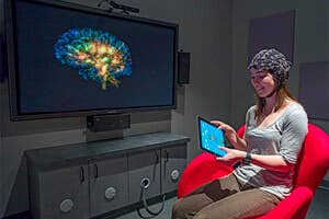 As brain research increasingly focuses on the connectome — looking to understand exactly how signals travel through the brain — scientists need good graphical interfaces. One University of California San Francisco lab has put together a gorgeous and, researchers hope, useful video game-like visualization. The system projects brain signals captured through electroencephalography onto a Unity 3D graphical image of the individual’s brain based on Magnetic Resonance Imaging and Diffusion Tensor Imaging. Researchers can travel through the model to get a closer look here or there using a joystick.