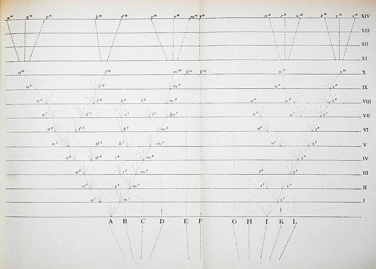 Diagram from the Origin of Species. Wikipedia, CC BY-SA